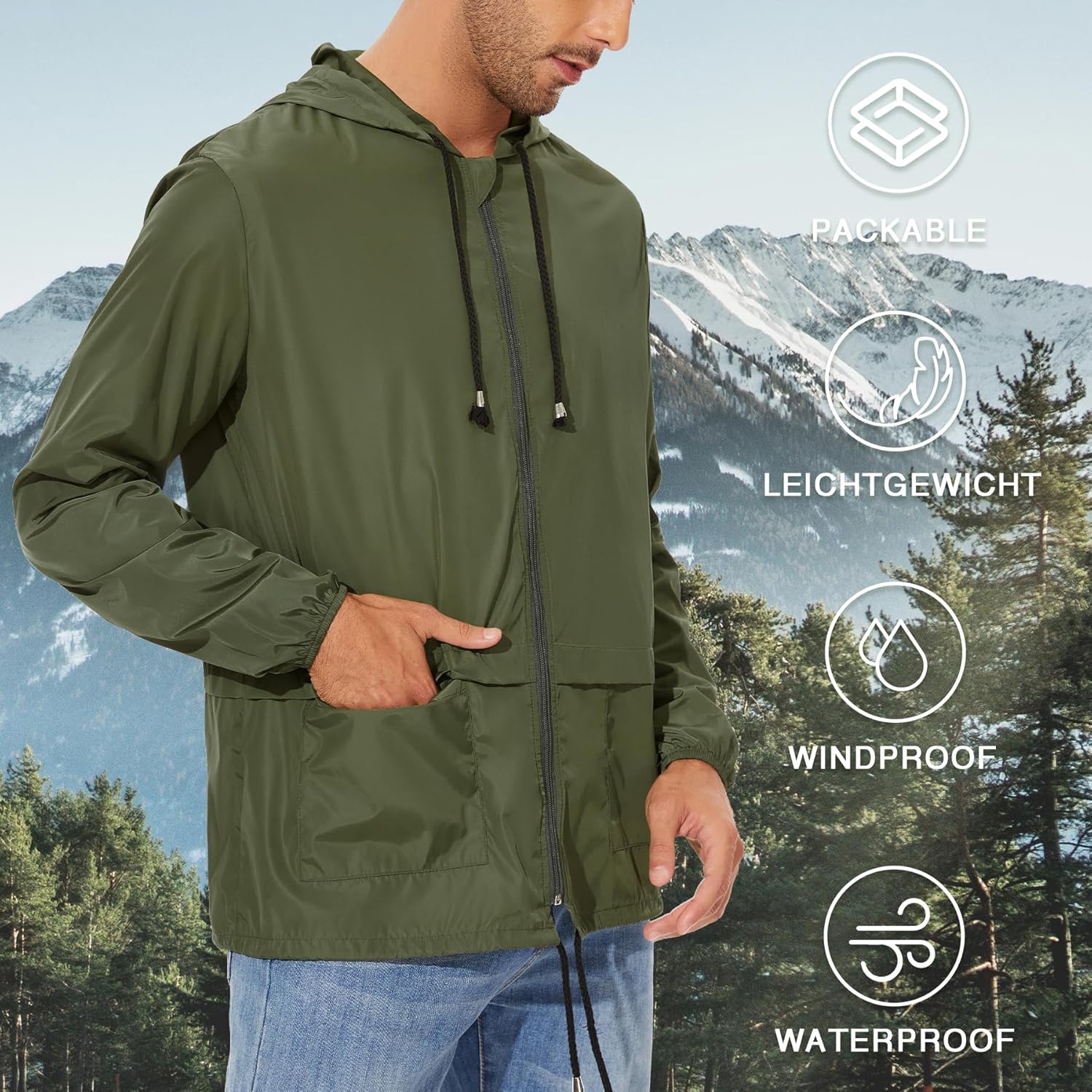 for Men Packable Rain Jacket Waterproof with Hood Outdoor Windbreaker Jackets Lightweight Cycling s